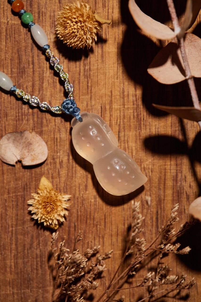 落花生,代表一代配戴就像花生落地,就馬生生根發芽,展現強大生命力。